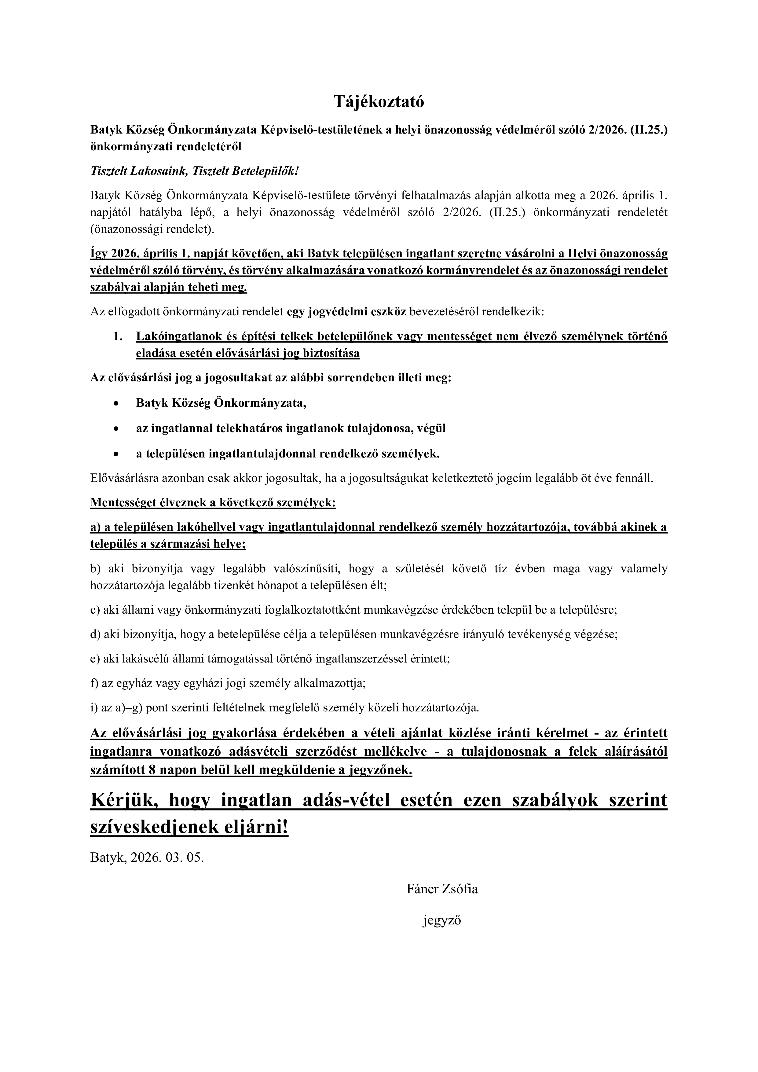 A helyi önazonosság védelméről szóló rendelettel kapcsolatos tájékoztatót itt találják.